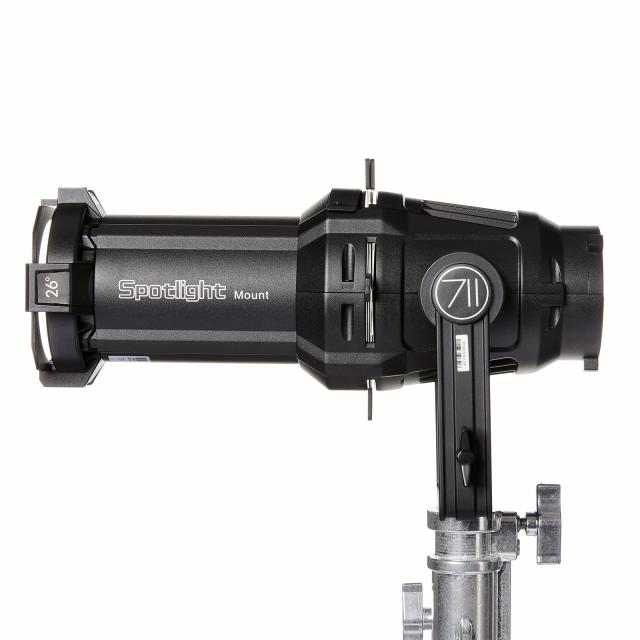 Der Aputure Spotlight Mount Set 26° ist ein Projektionsvorsatz für unsere Aputure LS 300mk2 Led Lampe. Er kommt mit 4 Shuttern, Gobohalter und 3 Gobos. Abstahlwinkel 26°. Ideal um mittlere Bereiche perfekt auszuleuchten. Batteriebetrieb der Aputure LS 300MK2 ist mit 2 V-mount batterien möglich, somit also auch einfach on Location zu benutzen.