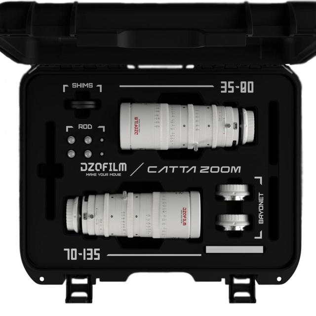 Our Catta Zoom Set from DZOFilm is a lightweight solution when shooting full-frame sensors on a Sony or Canon RF System like our Sony FX6 or FX3 or the New Canon R5C. It's also fine to use with our C70 with their Super 35-Sensor. Check out the tech specs in the Info field. The Catta Zooms were specially made to work with mirrorless camera systems. By this, the dimensions of the lens could keep much smaller. The filter diameter and also outer shape are the same on both lenses. This will make swopping of lenses a no trouble job. The parfocal design ensures staying focussed when zooming in or out. The T2,9 makes this the perfect tool for documentary or when shooting in low light situations. There is a filter tray for drop-in filters if filtering in front is impossible. The Set consists of two lenses: 30-80mm and 70- 35 mm both with T2,9. Currently, we offer the Sony E-Version and the Canon RF-Version.